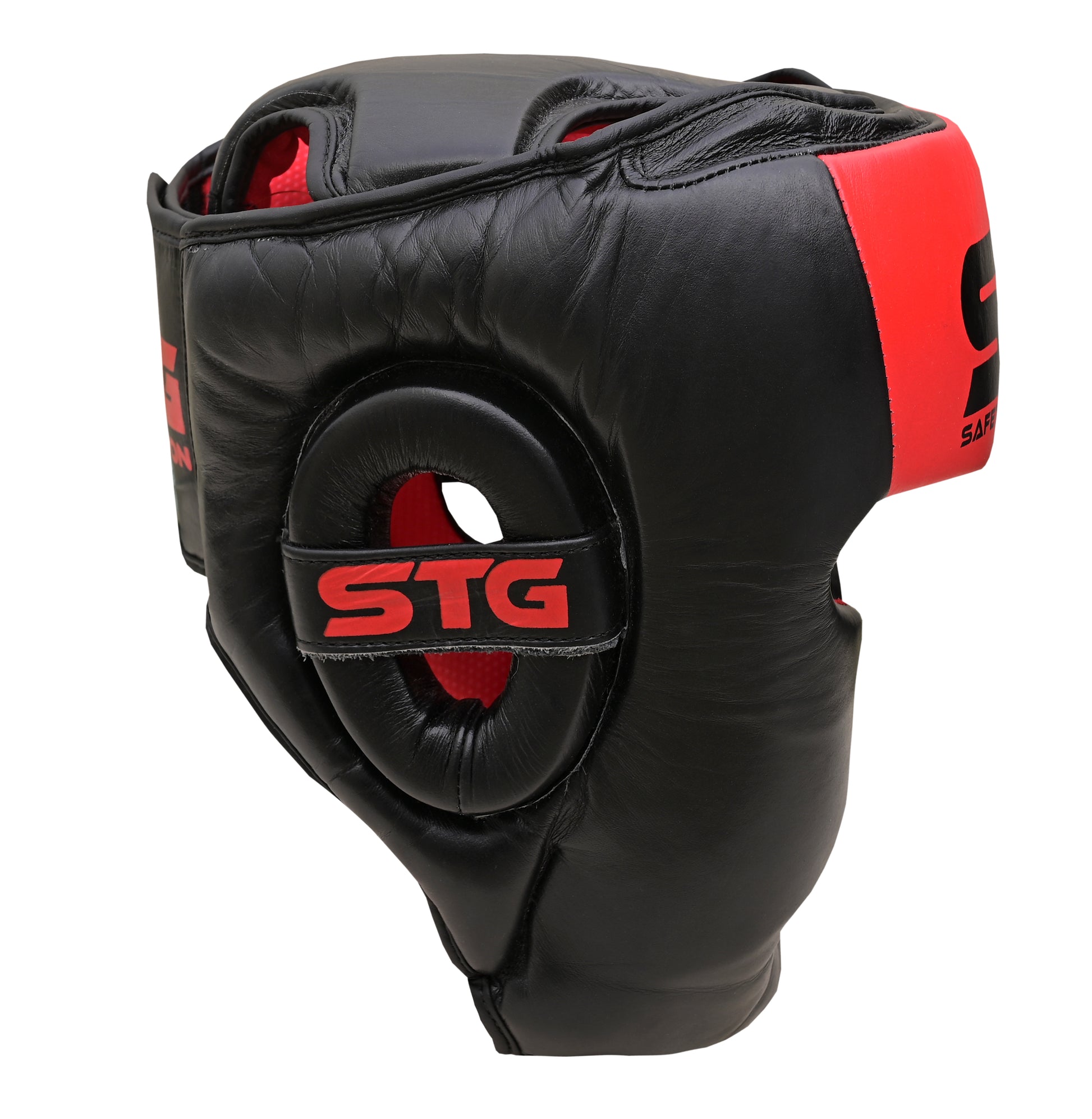 Step into the ring with confidence and style with the STG Red Edition Boxing Headgear, meticulously crafted from 100% Genuine Black Leather for elite durability and premium comfort. Designed for boxers, sparring partners, and self-defense training, this headgear delivers maximum impact absorption without sacrificing visibility or breathability.